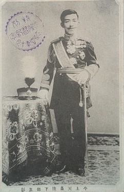 大正時代に行われた軍事演習を記念して配られたものだと思う絵はがきが見つかりました。撮影したのは明治時代の終わり、まだ皇太子の時代と言われています。大正天皇は幼い頃より病弱であったそうですが、在位の期間も短いのであまりよく知られていませんが、お顔は明治天皇や昭和天皇によく似ていると感じます。