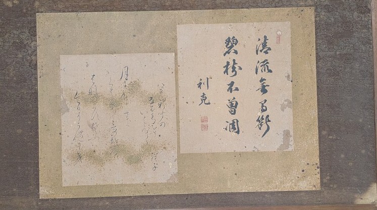 南部利克(なんぶとしなり)氏の書と思われるものが見つかりました。達筆すぎて何と書かれているのか分かりません。左側には女性の書もあるのですが、これもまた達筆すぎて分かりません。ところどころ「流」「碧」「不」「曽」は分かるのですが。